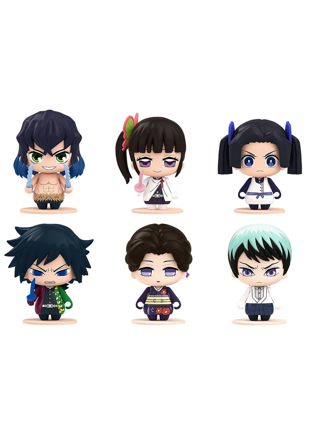 From the popular series "Demon Slayer: Kimetsu no Yaiba" comes a set of Pocket Maquette collectible figures! The line-up includes "Inosuke Hashibira (Unmasked)", "Kanao Tsuyuri", "Aoi Kanzaki", "Giyu Tomioka (Angry Face)", "Tamayo" and "Yushiro" for a total of 6 varieties! They can be displayed either standing or sitting. The figures of Inosuke, Kanao and Giyu each come with their swords. Be sure to add them to your collection!