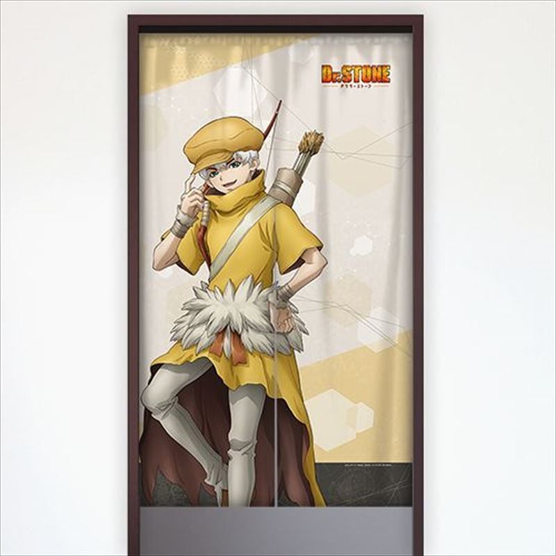 A Japanese-style noren curtain, featuring full color artwork of "Dr. Stone" character Ukyo Saionji. It comes in a solid state, but features guide lines to cut with scissors should flaps be desired. Create a stylish divide between rooms with this fun noren curtain, so don't miss out, be sure to order yours today!