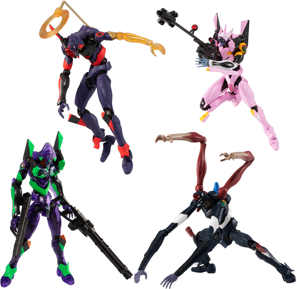 These "Evangelion" models feature armor sets that assemble easily onto a posable inner frame, for a fully flexible figure result that you'll love having in your collection! Two types of option sets with weapons and more are included; the lineup includes Evangelion Unit 1 Awakening version, and Evangelion Unit 8 Alpha. Stickers are included for their markings. There are ten different items available, randomly packed in boxes of ten. Place your order today!