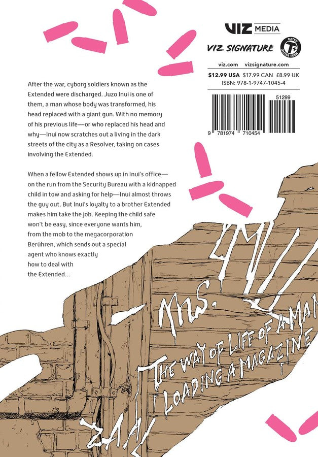After the war, cyborg soldiers known as the Extended were discharged. Juzo Inui is one of them, a man whose body was transformed, his head replaced with a giant gun! With no memory of his previous life—or who replaced his head and why—Inui now scratches out a living in the dark streets of the city as a Resolver, taking on cases involving the Extended.