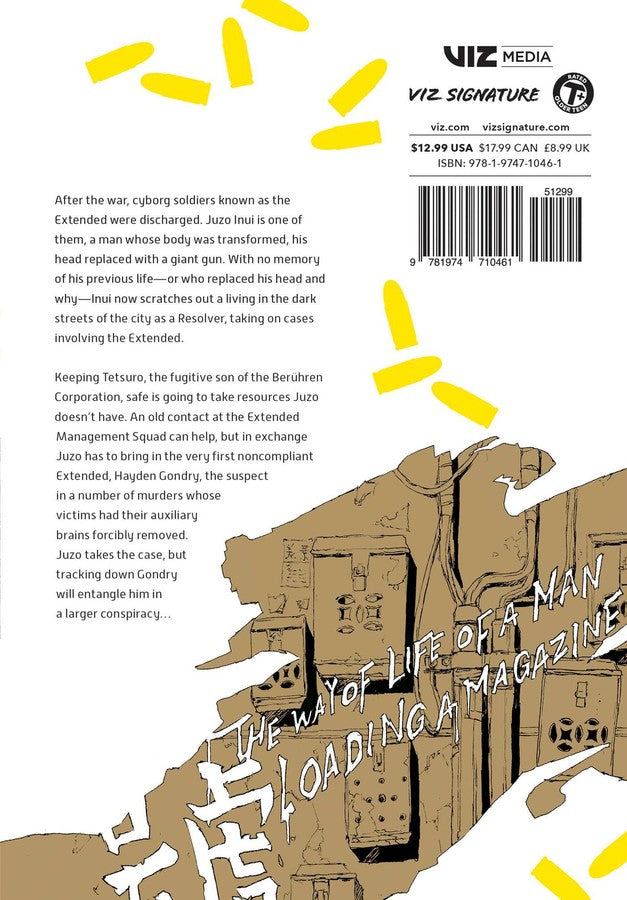 After the war, cyborg soldiers known as the Extended were discharged. Juzo Inui is one of them, a man whose body was transformed, his head replaced with a giant gun! With no memory of his previous life—or who replaced his head and why—Inui now scratches out a living in the dark streets of the city as a Resolver, taking on cases involving the Extended.