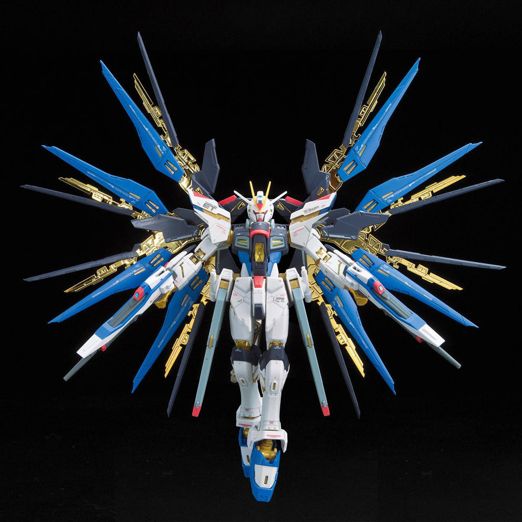 The Real Grade Strike Freedom is the first RG kit with the frame molded in this gold color. The Dragoons even feature gold plating for that beautiful result right out of the box. Does not include a stand.